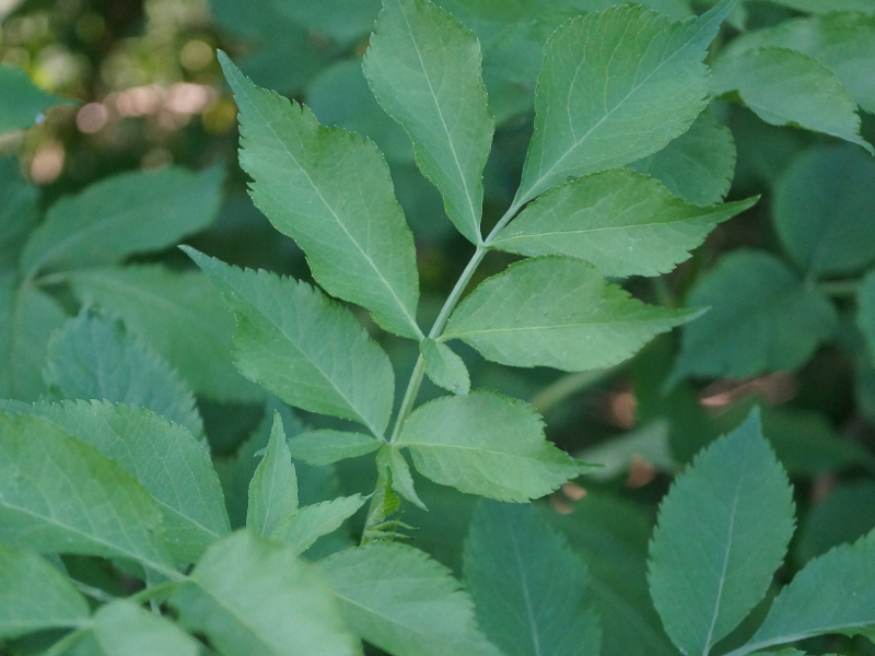 Liście złożone, nieparzystopierzaste. Listki odwrotnie jajowate – lancetowate, piłkowane, u nasady niesymetryczne. Ogonki listków bardzo krótkie lub brak, ogonek liścia długi. Na liściu od 3 do 9 listków (zazwyczaj 5).