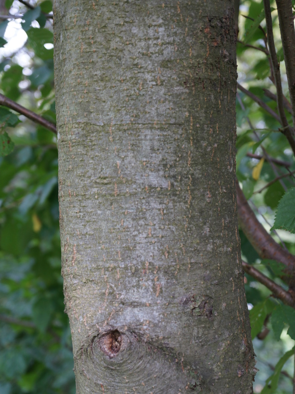Kora szara, gładka jedynie z niewielkimi pęknięciami. Podobna do olszy szarej jest olsza czarna. Olsza czarna posiada jednak silnie spękaną, ciemniejszą korę, jest także drzewem wyższym. Olsza szara występuje głównie na terenach górskich i wyżynnych w niższych terenach ustępuje miejsca olszy czarnej. |