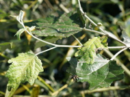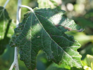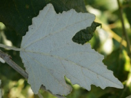 Młode pędy i liście praktycznie całe pokryte biało popielatym meszkiem, który stopniowo zanika pozostając na ogonku i spodniej stronie liścia.