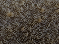Wierzchnia strona początkowo biała i gładka, później brązowieje i robi się lekko spękana, miejscami łuszcząca się.