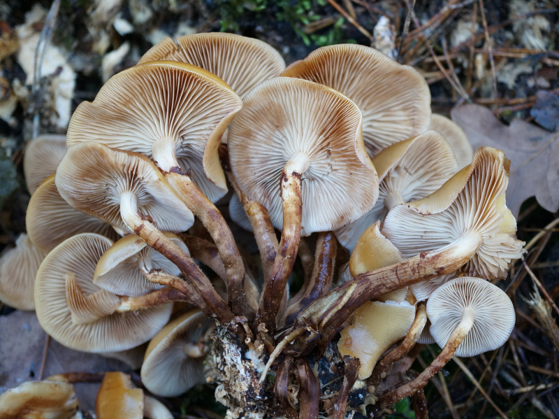 Kapelusz wielkości kilku centymetrów (do 7) koloru od żółtawego do jasno brązowego (cynamonowy) z jaśniejszym, kremowo brązowym środkiem. Na zewnętrznej części kapelusza występują małe jasne łuski. Wypukły do płaskiego z garbkiem na środku.