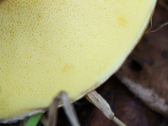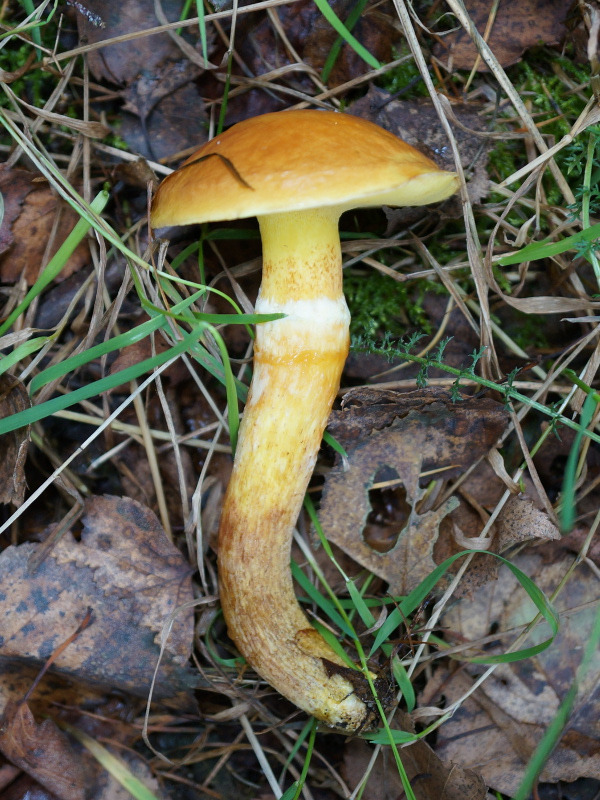 Kapelusz początkowo półkolisty u starszych osobników poduchowaty. Barwa żółtawa przez pomarańczową do jasno brązowej. Skórka trudno oddziela się od miąższu.