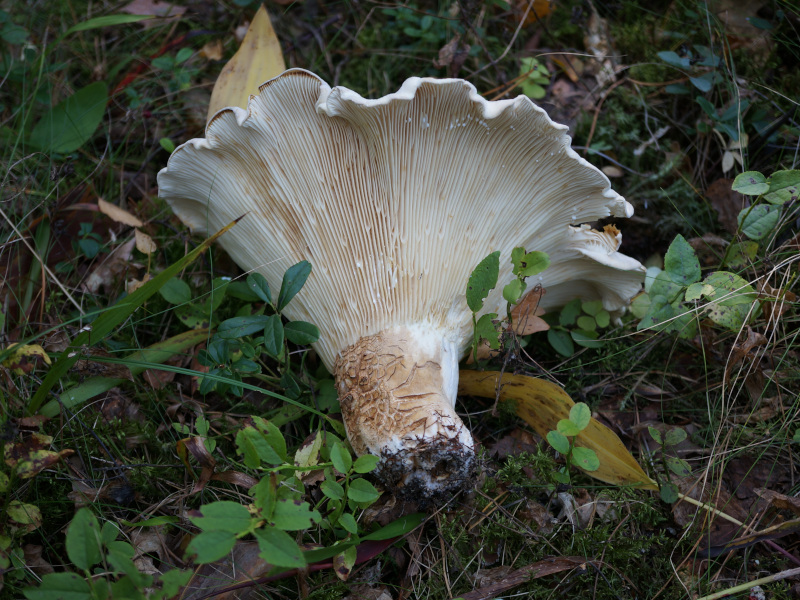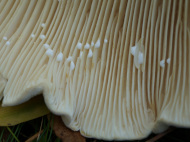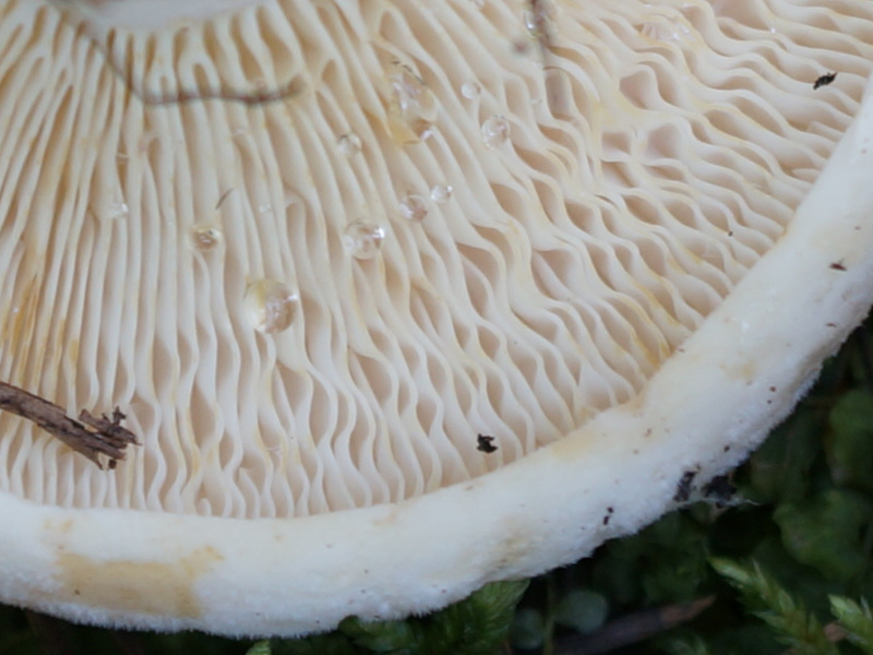 Blaszki stosunkowo rzadkie, grube, białe do jasno ochrowych.