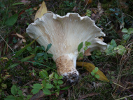 Początkowo brzeg podwinięty, później delikatnie zagięty ku dołowi.