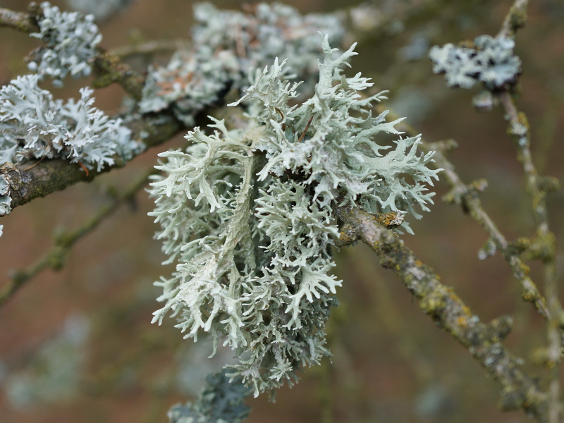 Mąkla tarniowa. Ma pokrój krzaczasty. Tworzy dosyć zróżnicowane kolorystycznie osobniki od jasno szarych do szaro – zielonych wpadających w niebieski. Wymaga środowiska o niskim zanieczyszczeniu powietrza.