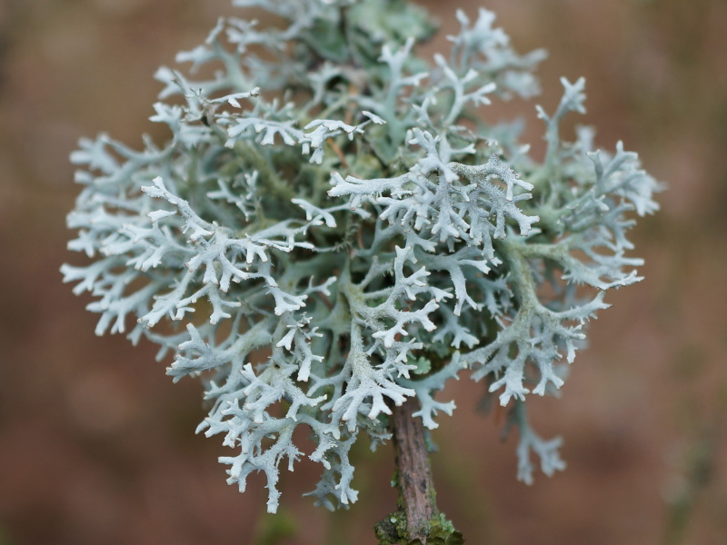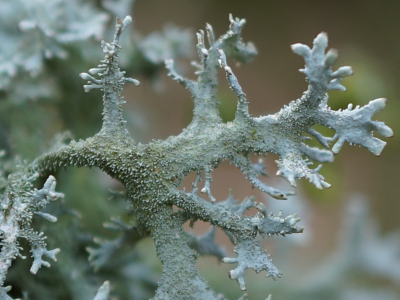 Mąklik otrębiasty. Porost (grzyb) należący do rodziny tarczownicowatych. Ma pokrój krzaczasto – listkowaty, wielokrotnie rozgałęziony. Górna strona przeważnie koloru jasno szarego, na starszych odcinkach plechy widoczne liczne izydia. Dolna strona wklęsła, od jasno szarej do brązowawej.