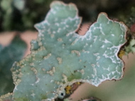 Na siateczce oraz krawędziach plechy tworzą się soralia.